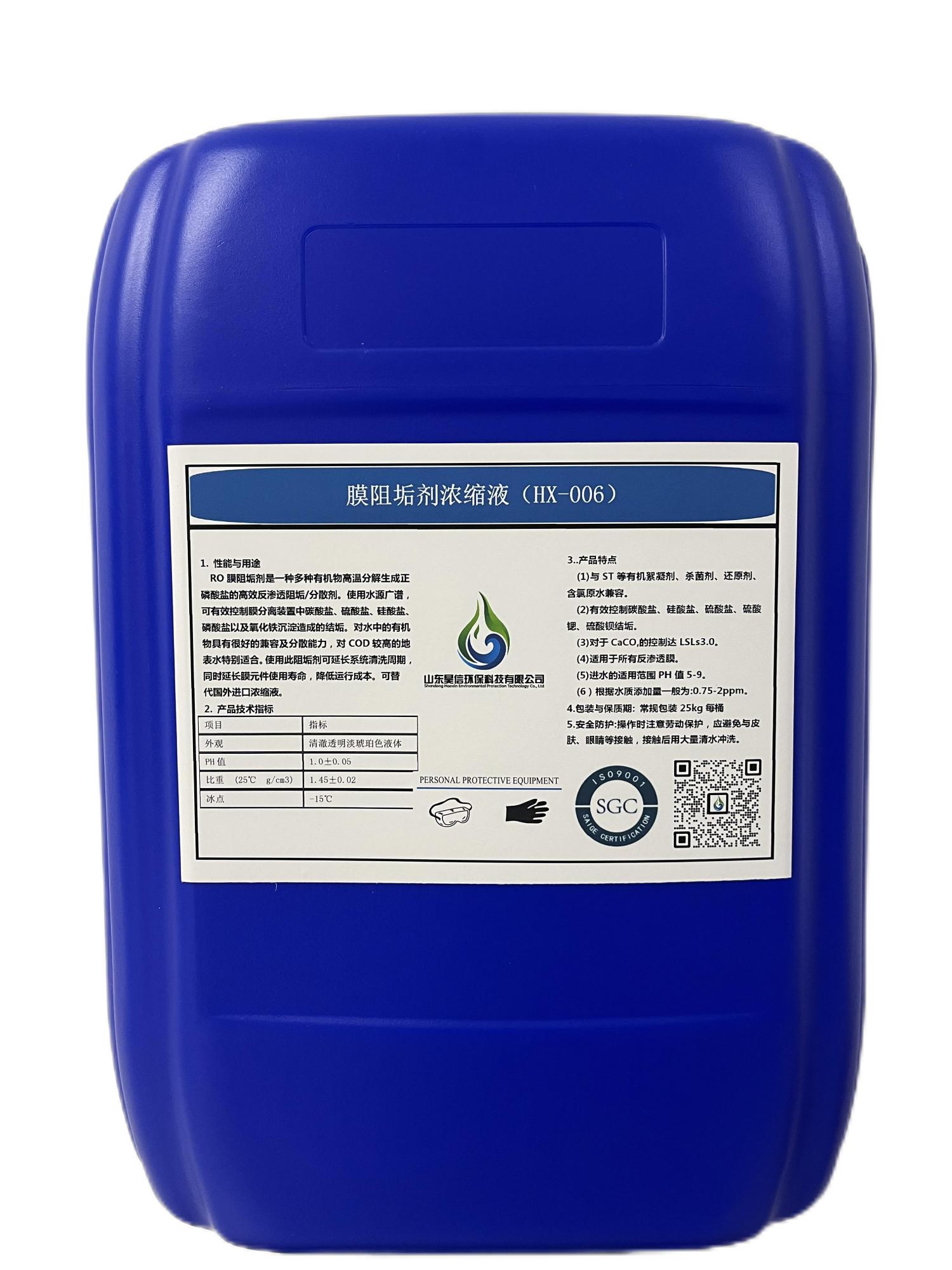 RO膜阻垢剂是一种多种有机物高温分解生成正磷酸盐的高效反渗透阻垢/分散剂。使用水源广谱,可有效控制膜分离装置中碳酸盐、硫酸盐、硅酸盐、磷酸盐以及氧化铁沉淀造成的结垢。对水中的有机物具有很好的兼容及分散能力,对COD较高的地表水特别适合。使用此阻垢剂可延长系统清洗周期,同时延长膜元件使用寿命,降低运行成本。可替代国外进口浓缩液。