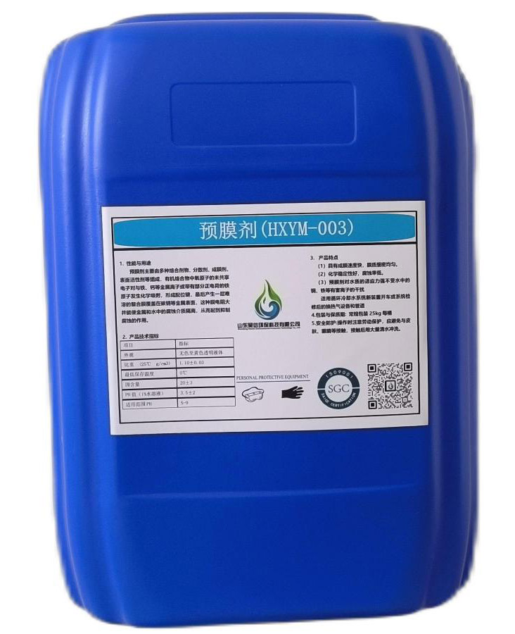 预膜剂具有成膜速度快,膜质细密均匀,化学稳定性好,腐蚀率低等特点。预膜剂对水质的适应力强不受水中的铜、铁等有害离子的干扰,预膜剂主要用于循环冷却水系统新装置开车或系统检修后的换热气设备和管道的预膜,使金属表面形成一层保护膜,防止运行时对碳钢、铜合金、不锈钢等材质的腐蚀。